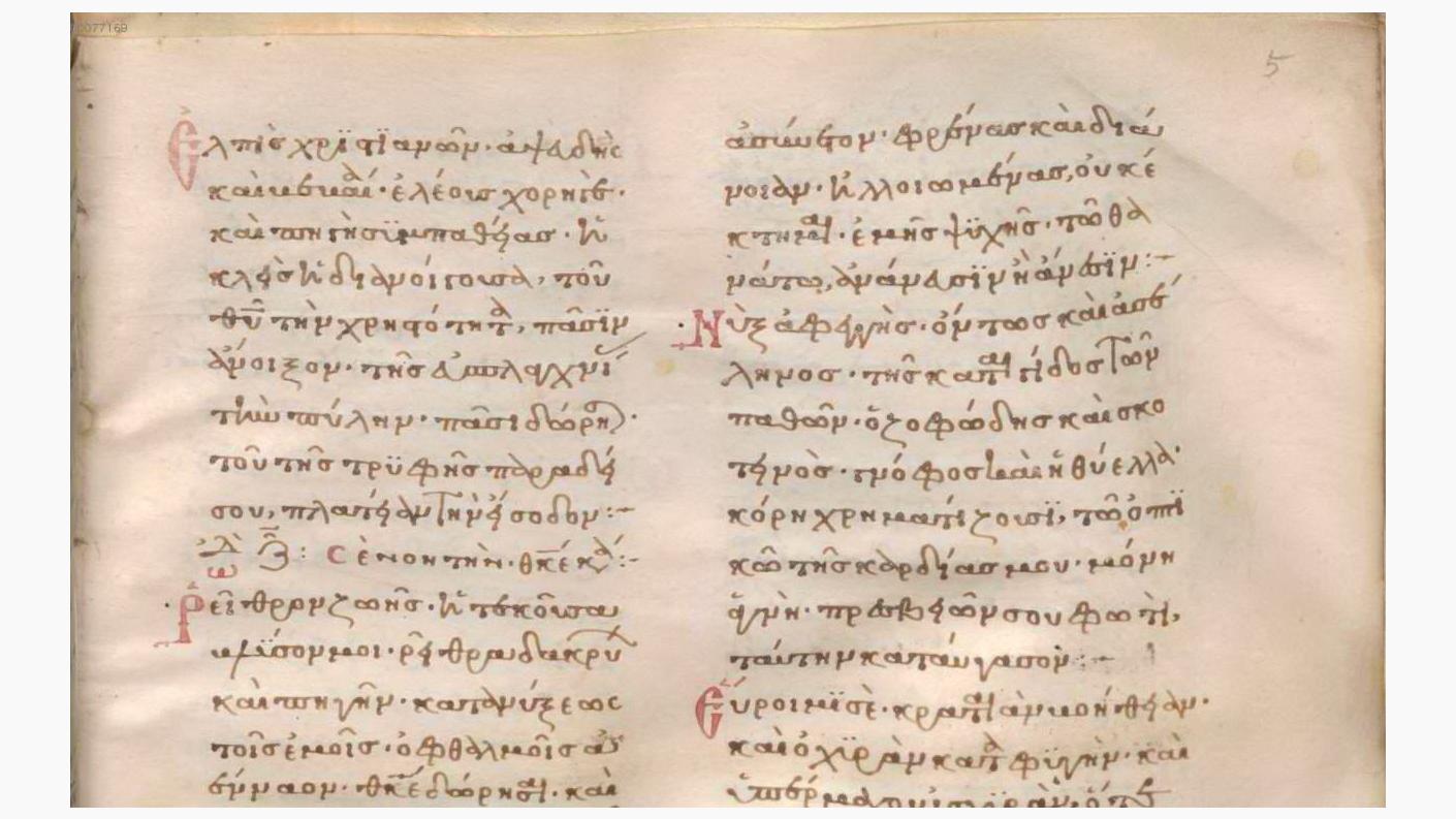 [6] Η Νικηφόροβα, Из истории Минеи в Византии, ο.π. σημ.8, 192, αναφέρει χαρακτηριστικά: „Тропологий старшей редакции состоял из древнего слоя (псалмы, тропари и неполные каноны неизвестных поэтов V–VII вв.) и нового (стихиры и полные каноны авторов VII–VIII вв.).“ (Το Τροπολόγιο της παλαιότερης παραλλαγής αποτελείται από αρχαίο στρώμα (ψαλμούς, τροπάρια και ατελείς κανόνες άγνωστων ποιητών του Ε’-Ζ’ αι. (η υπογράμμιση δική μας) και νεότερο (στιχηρά και ολοκληρωμένους κανόνες επώνυμων ποιητών του Ζ’-Η’αι.). Επίσης στη σελ. 290: „Многострофные к. встречаются в Минеях XI–XII вв. гроттаферратской коллекции и, вероятно, связаны с их константинопольским происхождением.“ (Πολύστροφα κοντάκια απαντούν στα Μηναία του ΙΑ’- ΙΒ’ αι. στη συλλογή της Γκρότα Φεράτα και αυτό πιθανόν έχει να κάνει με την κωνσταντινουπολίτικη προέλευσή τους (ενν. των Μηναίων, η υπογράμμιση δική μου).)